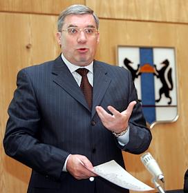 Губернатор Новосибирской области Виктор Толоконский на пресс-конференции, посвященной презентации инвестиционного проекта по созданию IT - технопарка в Новосибирском Академгородке. Пресс-конференция прошла в представительстве администрации Новосибирской области.