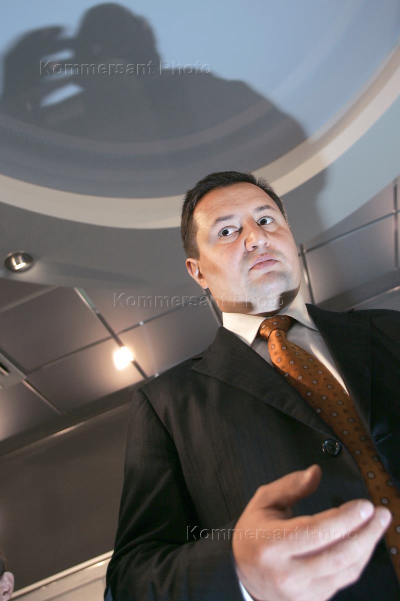 Первый заместитель председателя правления банка "РОСБАНК" Владимир Голубков во время пресс-конференции на тему: "Изменение модели развития розничного бизнеса РОСБАНКа". Пресс-конференция прошла в РИА "Новости".
