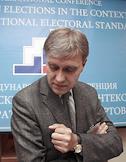 Президент фонда "ИНДЕМ" Георгий Сатаров на Международной конференции "Российские выборы в контексте международных избирательных стандартов". Конференция прошла в гостинице "Националь".