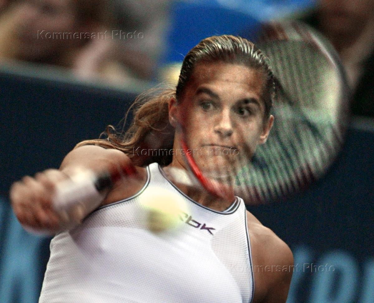 Bolgarian tennis player Sesil Karatancheva performs in Olimpiysky sport complex during the Kremlin Cup 2005.