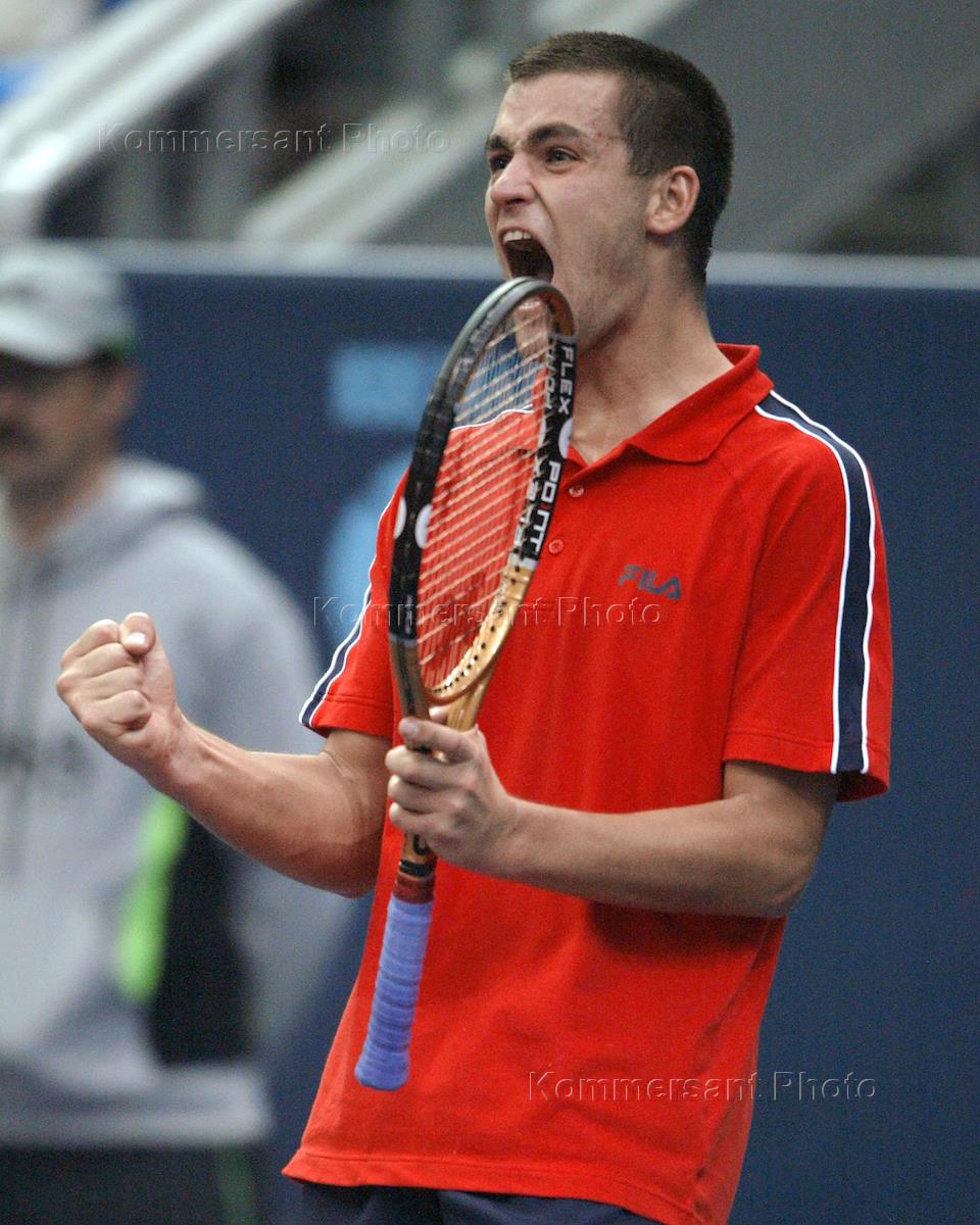 Russian tennis player Mikhail Yuzhny takes part in the Kremlin Cup 2005 tournament in Olimpiysky sport complex.