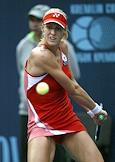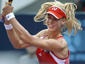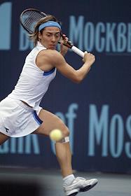 Russian tennis player Elena Dementyeva takes part in the Kremlin Cup 2005 tournament in Olimpiysky sport complex.