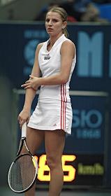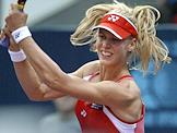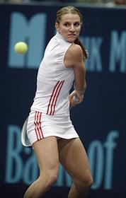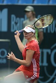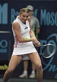 Bolgarian tennis player Sesil Karatancheva performs in Olimpiysky sport complex during the Kremlin Cup 2005.