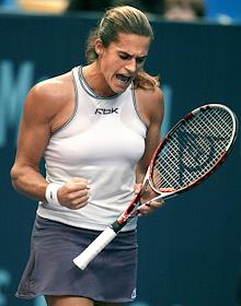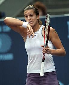 Russian tennis player Amélie Mauresmo takes part in the Kremlin Cup 2005 tournament in Olimpiysky sport complex.