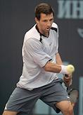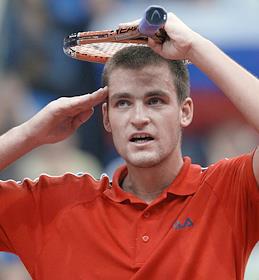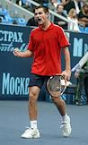 US tennis player Paul Goldstein performs during the Kremlin Cup 2005 held in Olimpiysky sport centre.