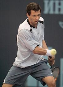 Russian tennis player Mikhail Yuzhny takes part in the Kremlin Cup 2005 tournament in Olimpiysky sport complex.