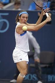 Italian tennis player Francesca Schiavone performs during the Kremlin Cup 2005 held in Olimpiysky sport centre.