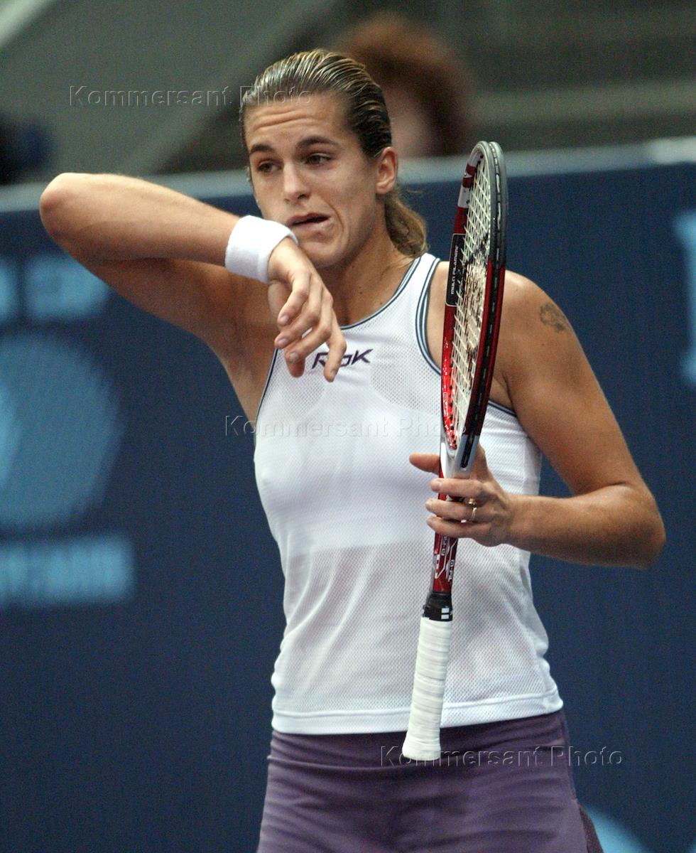 Французская теннисистка Амели Моресмо во время игры на Международном теннисном турнире "Кубок Кремля - 2005" в спортивном комплексе "Олимпийский".