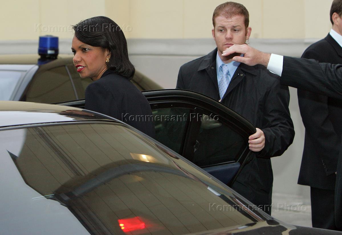 US Secretary of State Condoleezza Rice leaves Russian Ministry of Fireign Affairs (MID) after the meeting with Russian Foreign Minister Sergey Lavrov.