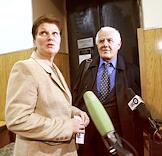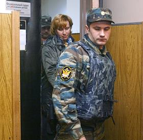 Адвокаты Ольга Козырева (слева) и Гамлет Атанесян (справа) в Симоновском суде Москвы, где началось слушание по существу уголовного дела начальника правового управления компании "ЮКОС-Москва" Светланы Бахминой. Светлана Бахмина обвиняется Генпрокуратурой в уклонении от уплаты налогов как физическим лицом в 2001 - 2002 годах на сумму 606 тысяч 040 рублей, а также в присвоении имущества на девять миллиардов рублей.