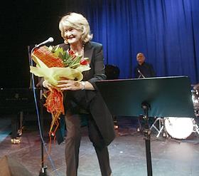 Певица Карин Крог (справа) во время выступления на российско-норвежском джазовом фестивале в театральном зале Московском Международном Доме Музыки (ММДМ).