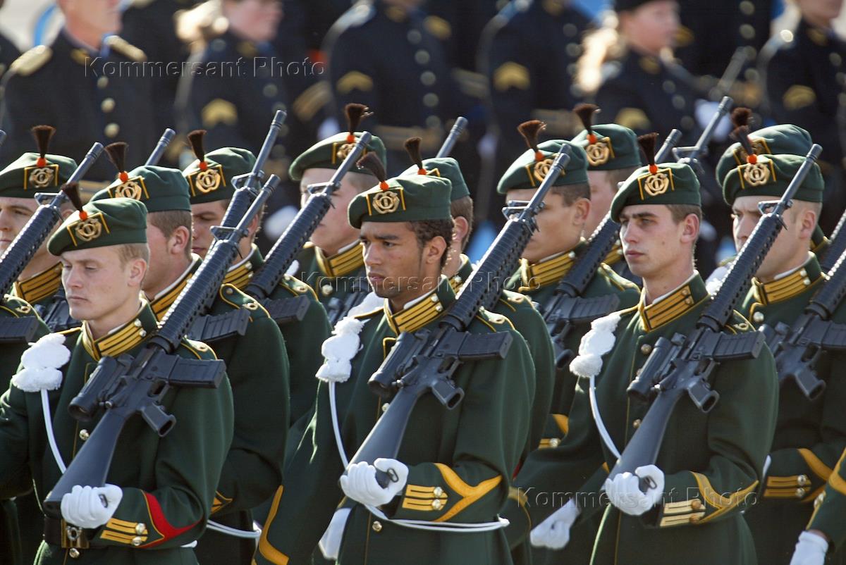 Строй почетного караула Нидерландов во время встречи Президента России Владимира Путина в аэропорту Скипхол.