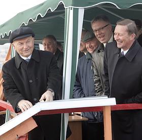 Закладка памятной капсулы в основание строящегося Ледового дворца с участием мэра Мосвы Юрия Лужкова и министром обороный Сергеем Ивановым