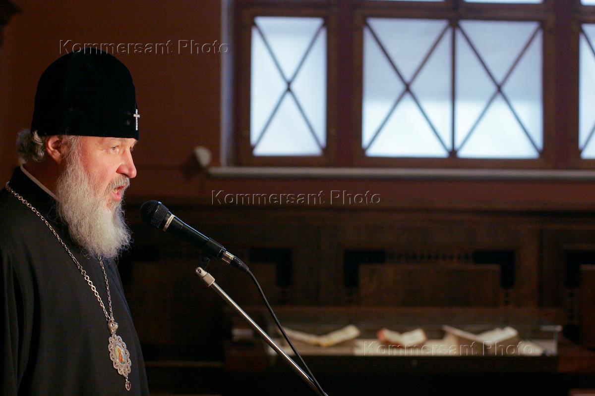 Председатель отдела внешних церковных связей Московского патриархата митрополит Смоленский и Калининградский Кирилл на церемонии открытия выставки "4 ноября 1612 года" в Государственном Историческом музее. Выставка посвящена новому российскому празднику – Дню народного единства. В этом году он отмечается впервые и посвящен событиям почти 400 - летней давности.