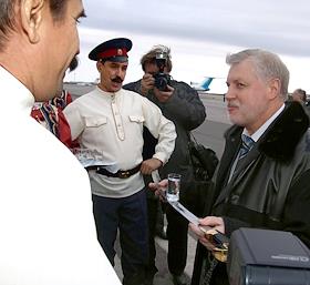 Председатель Совета Федерации России Сергей Миронов (справа) с делегацией Совета Федерации прибыл с однодневным рабочим визитом в город Ростов-на-Дону.