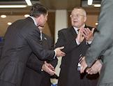 Заместитель руководителя Федерального агентства по рыболовству Сергей Подолян (справа) на Международной рыбопромышленной выставке "РЫБПРОМ - ЭКСПО 2005". Выставка прошла во Всероссийском выставочном центре (ВВЦ).