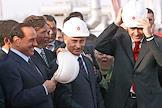 Президент России Владимир Путин (в центр), премьер-министр Турции Реджеп Эрдоган (справа) и премьер-министр Италии Сильвио Берлускони (слева) на официальной церемонии открытия газопровода "Голубой поток".