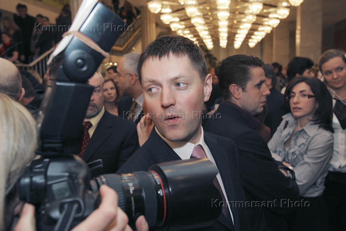 Тележурналист Алексей Пивоваров на торжественной церемонии вручения национальной телевизионной премии "ТЭФИ 2005" в номинациях "Лица". Церемония прошла в ГЦКЗ "Россия".