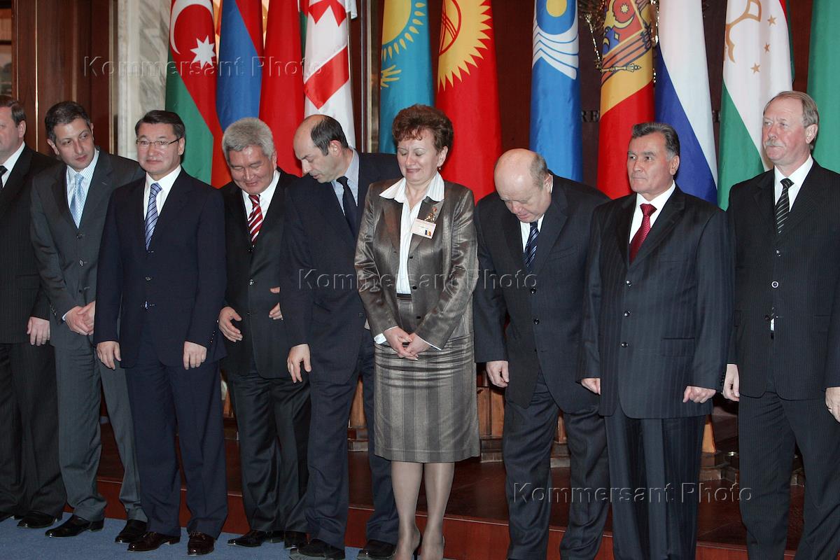 Left to right: Georgian Prime Minister Zurab Nogaideli, Kazakhstan Prime Minister Danial Akhmetov, Kyrgyz Prime Minister Feliks Kulov, CIS Executive Secretary Vladimir Rushaylo, Moldovan First Deputy Prime Minister Zinaida Greciani, Russian Prime Minister Mikhail Fradkov, Tadjikistan Prime Minster Akil Akilov, and Russian Deputy Prime Minister Vyacheslav Golyshev, right, attend the session of CIS states heads of the governments. The session took place in President Hotel.
