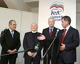 Президент Татарстана Минтимер Шаймиев (слева), мэр Москвы Юрий Лужков (второй слева), председатель Государственной Думы России Борис Грызлов (второй справа) и министр России по делам гражданской обороны, чрезвычайным ситуациям и ликвидации последствий стихийных бедствий Сергей Шойгу (справа) на VI съезде партии "Единая Россия", который прошел в Красноярске.