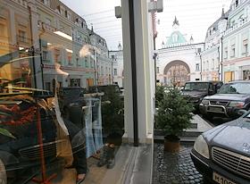 Виды Москвы. Улица бутиков и дорогих магазинов в Третьяковском проезде.