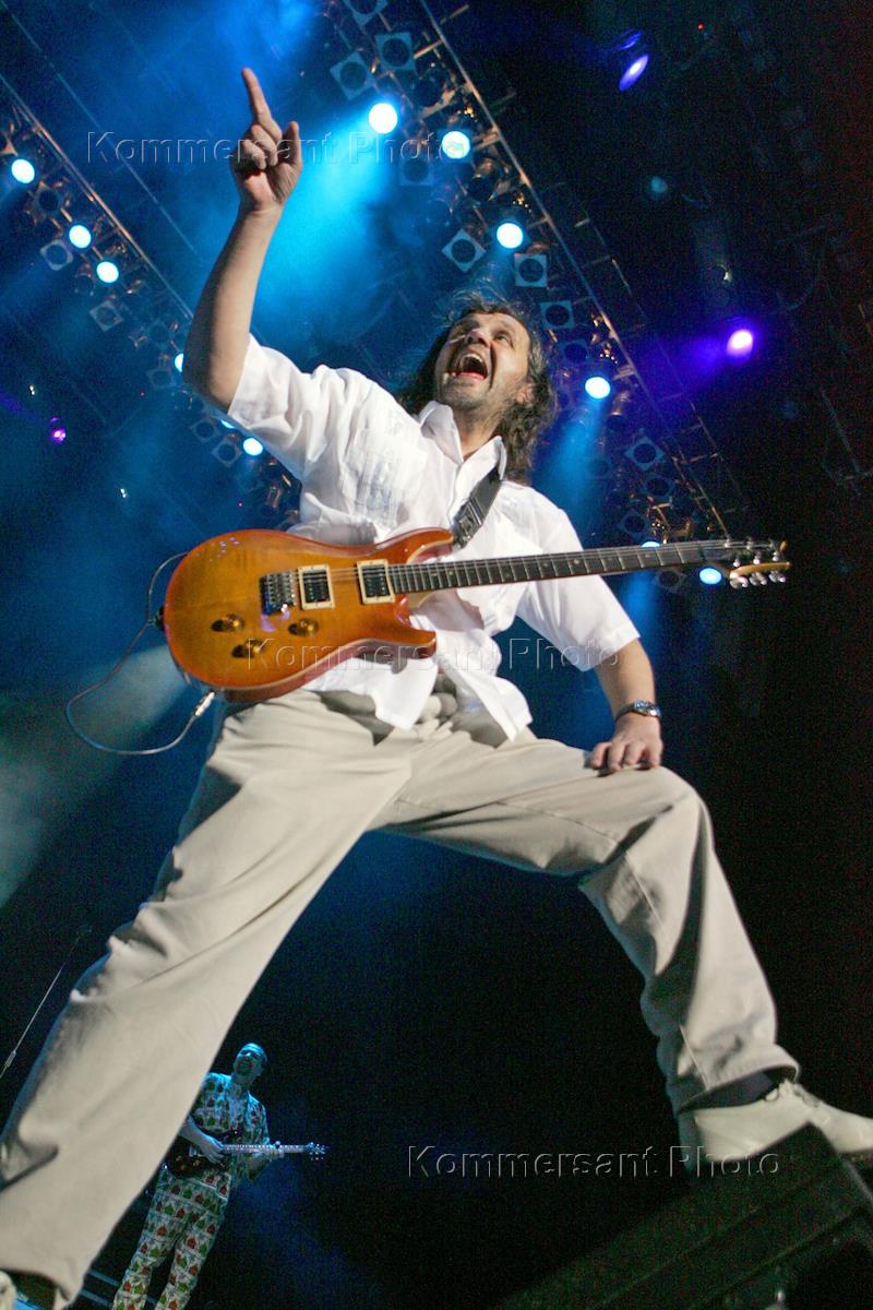 Кинорежиссер и музыкант Эмир Кустурица во время выступления на сольном концерте в ночном клубе.