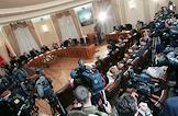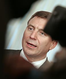 Секретарь Московского регионального политсовета Всероссийской политической партии "Единая Россия" Юрий Карабасов на пресс-конференции по итогам выборов в Московскую городскую думу. Пресс-конференция прошла в Мосгоризбиркоме.