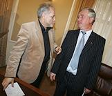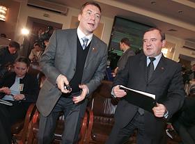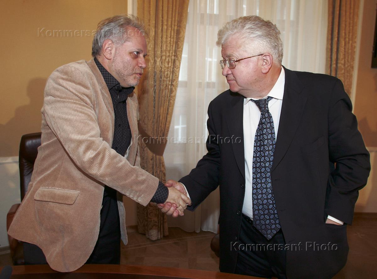Депутат Московской городской думы, координатор фонда "Культура и искусство" Евгений Бунимович (слева) и председатель Московской городской избирательной комиссии (Мосгоризбирком) Валентин Горбунов (справа) на пресс-конференции по итогам выборов в Мосгордуму. Пресс-конференция прошла в Мосгоризбиркоме.