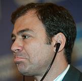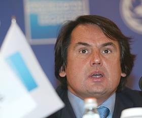 Менеджер банка "Русский стандарт" Рафаэль Карраскос во время пресс-конференции, на которой "Русский Стандарт" и компания "American Express" объявили о выпуске первых карт "American Express" в России. Пресс-конференция прошла в гостинице "Арарат Парк Хаятт".