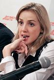 Член сборной команды России по плаванию Станислава Комарова во время пресс-конференции на тему: "Скандал в сборной России по плаванию накануне чемпионата Европы. Чиновникам деньги важнее результатов?". Пресс-конференция прошла в пресс-центре газеты "Аргументы и факты" (АиФ).