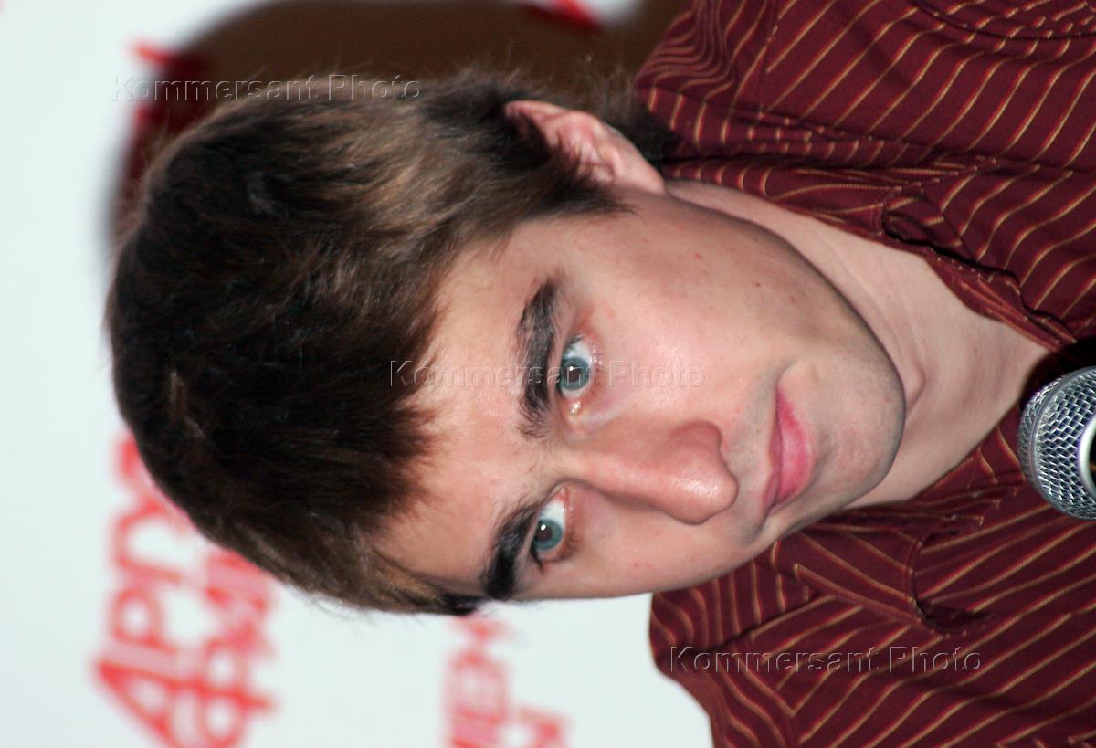 Член сборной команды России по плаванию Дмитрий Коморников во время пресс-конференции на тему: "Скандал в сборной России по плаванию накануне чемпионата Европы. Чиновникам деньги важнее результатов?". Пресс-конференция прошла в пресс-центре газеты "Аргументы и факты" (АиФ).