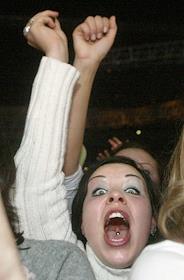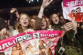 Зрители на концерте участников телепроекта "Дом 2" - "Звезды "Дома - 2" поют!" в спорткомплексе "Олимпийский".