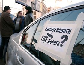 Всероссийская акция против намерений бюджетной комиссии Совета Федерации России изменить закон о транспортном налоге, в котором теперь будет предусмотрена возможность пятикратного увеличения ставок - на улицах Москвы.