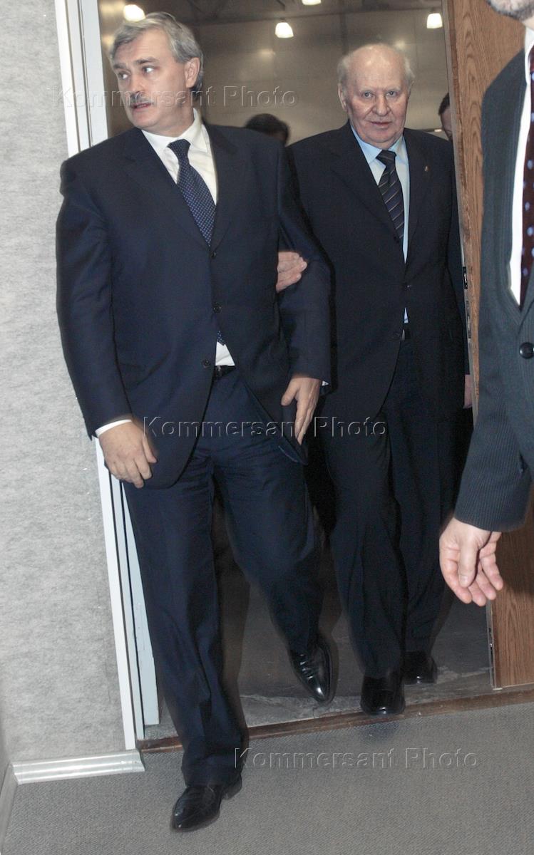 Полномочный представитель Президента России в Центральном федеральном округе (ЦФО) Георгий Полтавченко (слева) и губернатор Орловской области Егор Строев (справа) на итоговом годовом заседании совета при полномочном представителе Президента России в Центральном федеральном округе. Заседание совета прошло в выставочном комплексе "Крокус-Экспо".