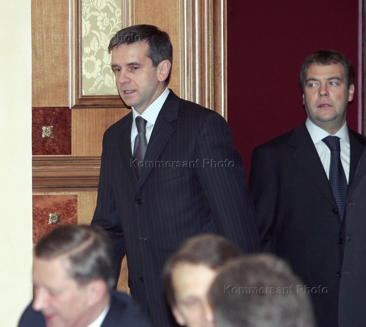 Министр здравоохранения и социального развития России Михаил Зурабов (слева) и первый заместитель председателя Правительства России Дмитрий Медведев (справа) на заседании Правительства России.