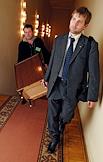 Внеочередной съезд Демократической партии России (ДПР) прошел в Октябрьском зале Дома Союзов. На съезде был избран новый лидер ДПР. Участники съезда несут урну для голосования.