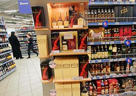 Торговый зал супермаркета "Перекресток". Отдел алкогольной продукции.