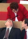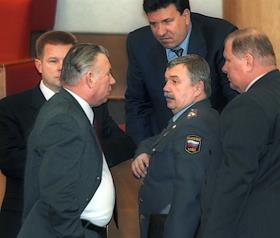 Депутат от фракции "Отечество — Вся Россия"(слева) Геннадий Кулик, депутат от фракции "Союз правых сил" Вера Лекарева (в центре) и депутат от "ОВР" Александр Жуков (справа) на заседании Государственной Думы.