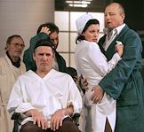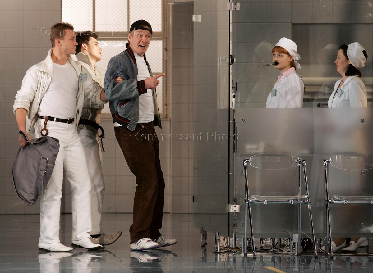 Премьера спектакля "Затмение" в театре "Ленком". Сценическая фантазия по мотивам романа Кена Кизи "Над кукушкиным гнездом". Постановка Александра Морфова. Режиссер Александр Абдулов.
