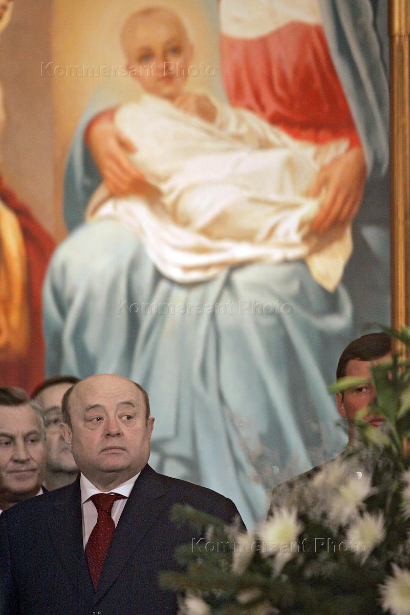 Председатель Правительства России Михаил Фрадков на рождественском богослужении в Храме Христа Спасителя.