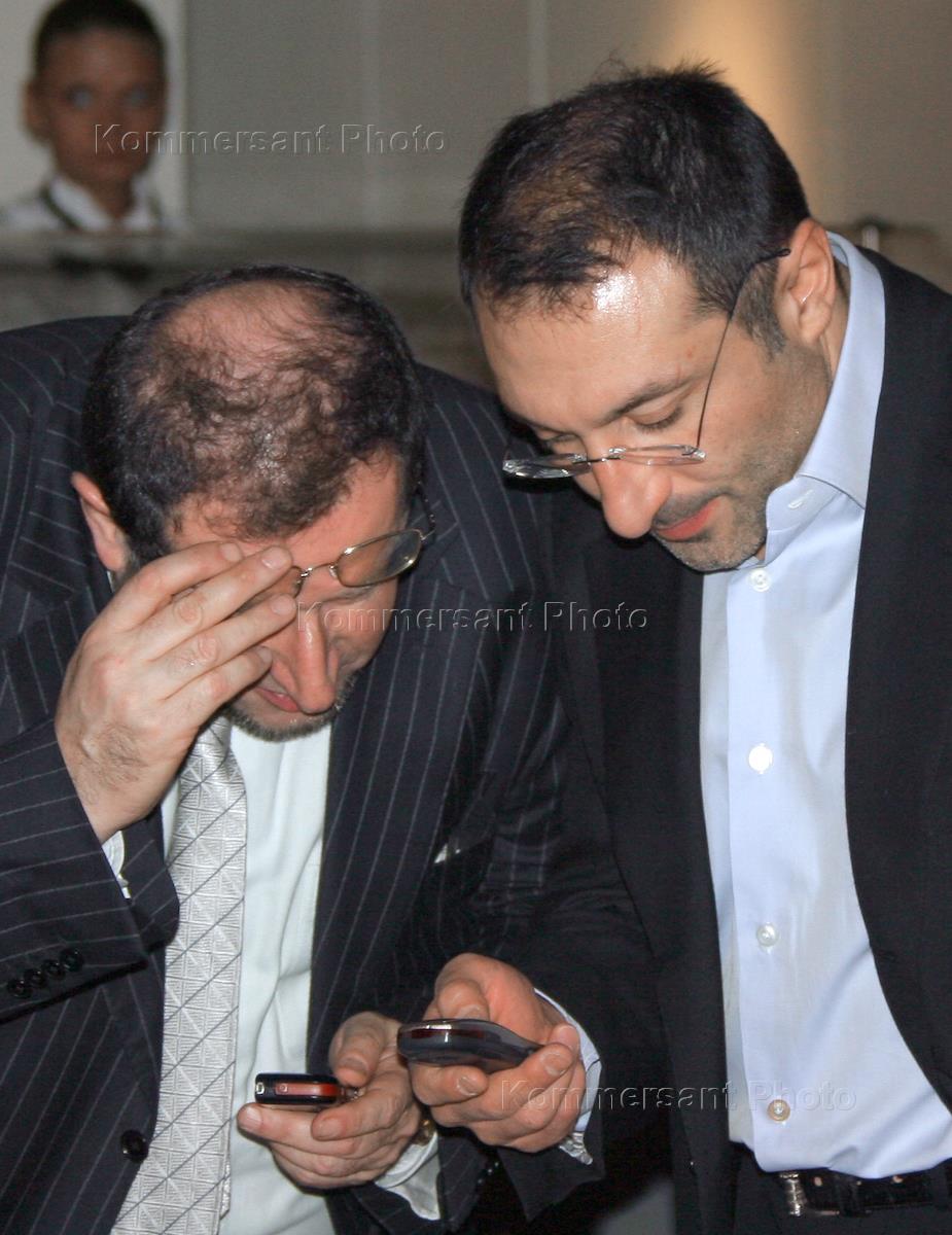 Chairman of the Board of Vimm-Bill-Dann David Yakobashvili, left, and Chairman of the Board of Alfa Group Mikhail Fridman, right, attend a reception devoted to Hanukkah. The event was held in the Forum Hall.