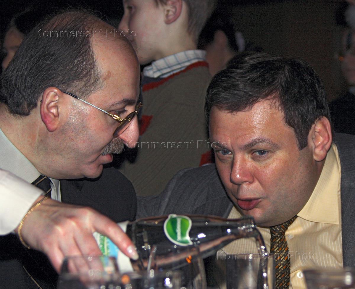 Chairman of the Board of Vimm-Bill-Dann David Yakobashvili, left, and Chairman of the Board of Alfa Group Mikhail Fridman, right, attend a reception devoted to Hanukkah. The event was held in the Forum Hall.