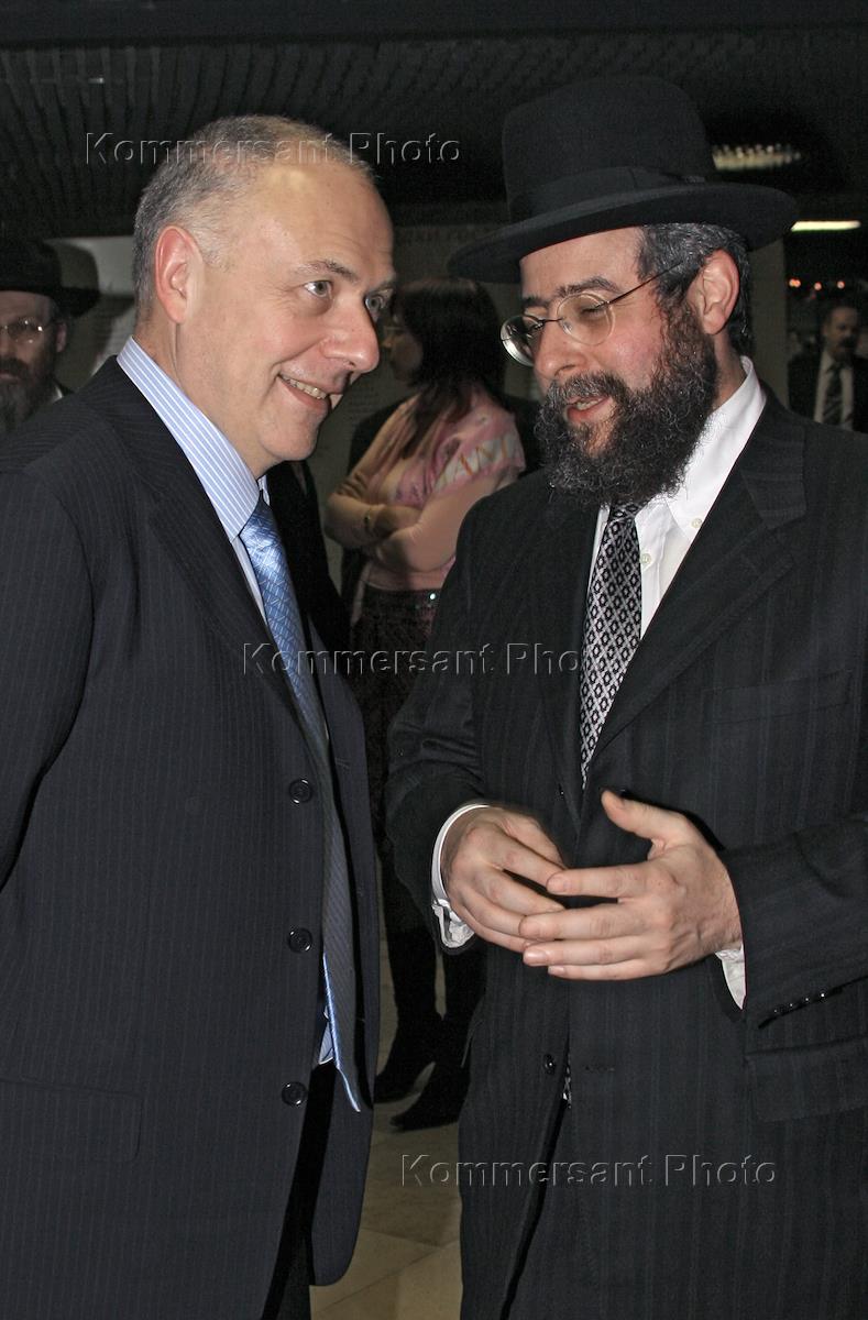 Chairman of the Board of Vimm-Bill-Dann David Yakobashvili, left, and Chairman of the Board of Alfa Group Mikhail Fridman, right, attend a reception devoted to Hanukkah. The event was held in the Forum Hall.