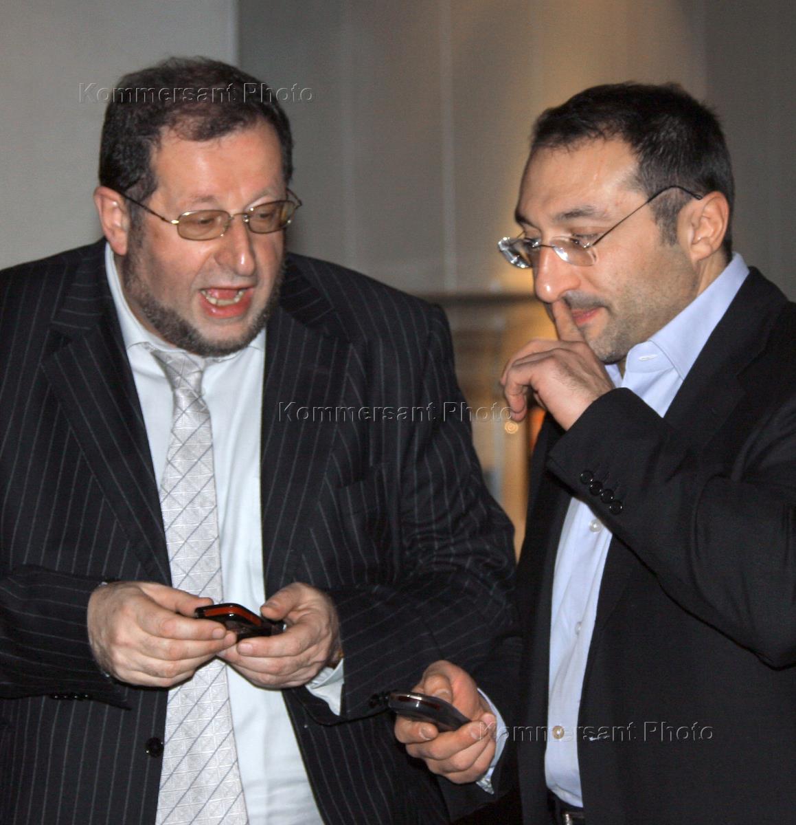 Chairman of the Board of Vimm-Bill-Dann David Yakobashvili, left, and Chairman of the Board of Alfa Group Mikhail Fridman, right, attend a reception devoted to Hanukkah. The event was held in the Forum Hall.
