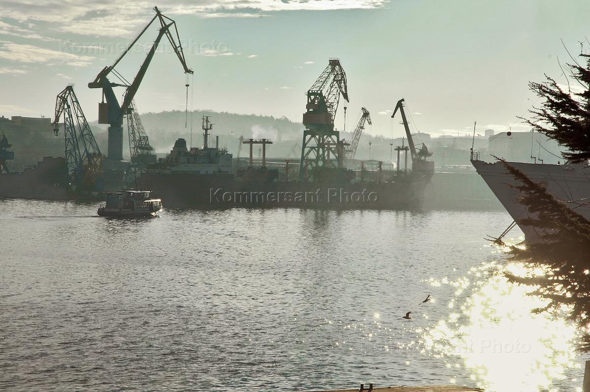 Commander of the surface ships division of the Russian Black Sea Fleet, rear admiral Oleg Garamov, centre, is shown at missile cruiser Moskva.