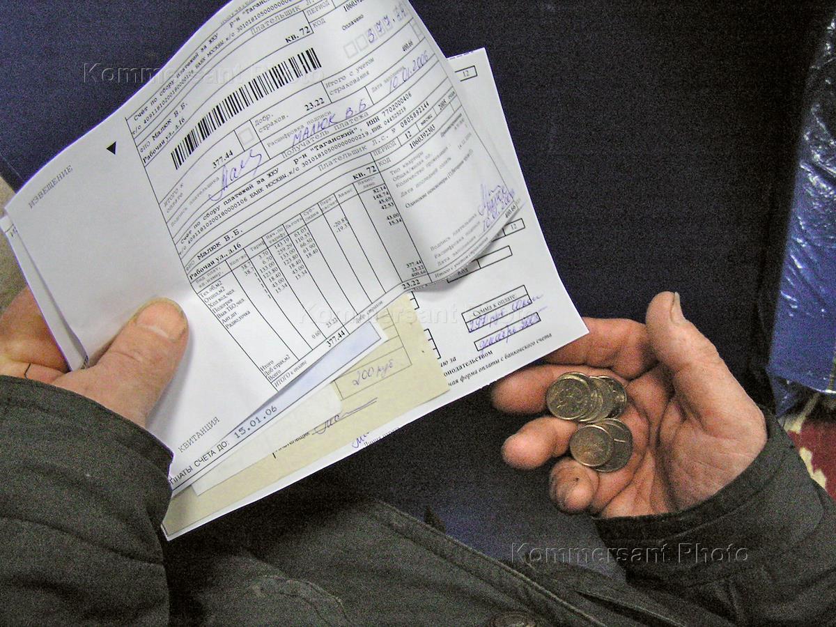 Пенсионер с квитанциями коммунальных платежей в Сберкассе.