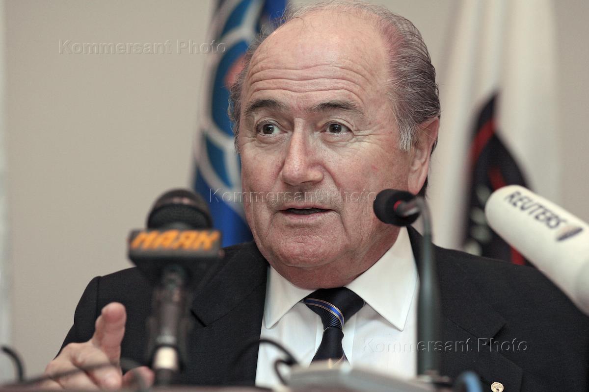 FIFA president Joseph Sepp Blatter attends a press conference in Olympiysky sports complex.