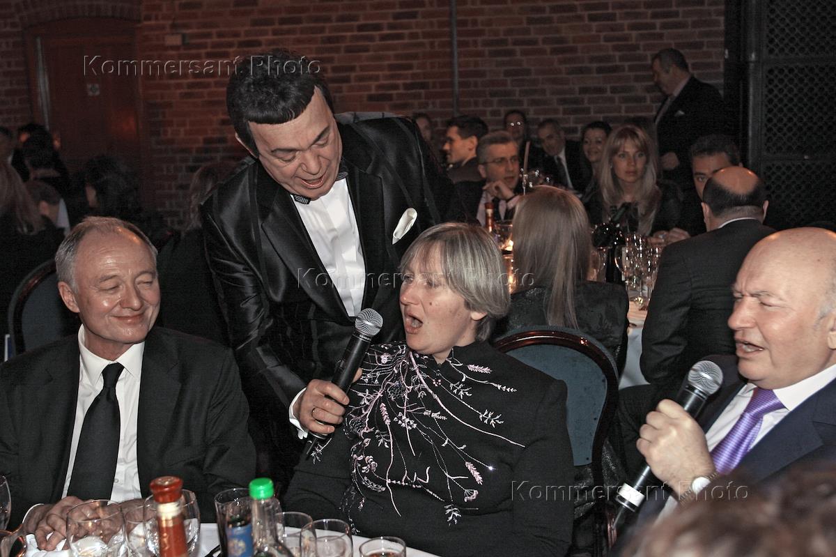 London Mayor Ken Livingstone, left, Deputy Chairman of the Russian State Duma Culture and Tourism Committee Iosif Kobzon, 2nd left, Moscow Mayor Yury Luzhkov, right, and his wife Elena Baturina, 2nd right, attend a dinner devoted to the russian New Year.