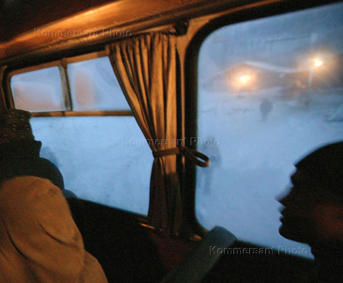 Золотодобывающий рудник Бадран в Якутии. Рабочие в автобусе.