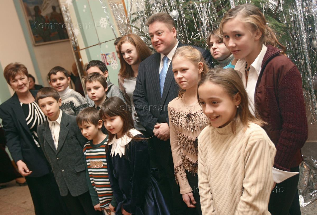 Губернатор Калининградской области Георгий Боос (в центре) на новогоднем детском празднике в здании областного театра.